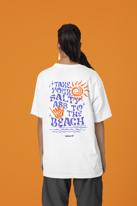 GRAVTY- Take Your Salty Ass to the Beach | White Oversized T-shirt